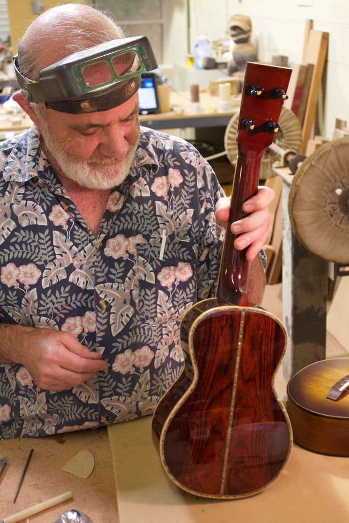 From painting he developed an eye for proportion and style. From designing and making jewelry it trained him to look for the smallest flaws and build with an attention to detail that has become the hallmark of his work as a luthier. When people talk about the construction of his instruments the one word you hear more than any other is the word "clean".
