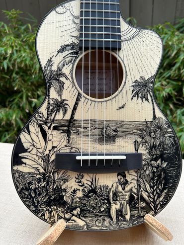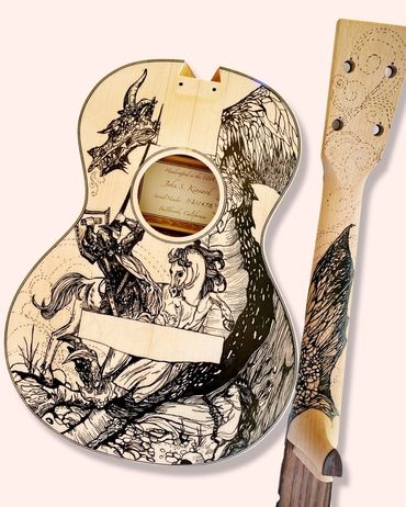 The Fine Art Collection is a custom ukulele build that is a collaboration between John Kinnard and Lily Cain. It combines the mastery of wood working and the beauty of fine art. Your vision or dream can come alive to create a one of a kind playable work of art that you can pass down to generations to come.
